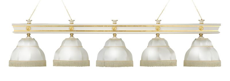Светильники Startbilliards производства ФС «Горизонт» с одним плафоном станут ярким дополнением интерьера, если его установить для акцента какой-либо зоны бильярдной комнаты. Это может быть зона отдыха, барная стойка или зона ресепшн. Светильники на 5 плафонов предназначены для бильярдных столов 10-11 футов. Они представлены в нескольких цветах, поэтому у вас есть возможность подобрать подходящий цвет под ваш интерьер.