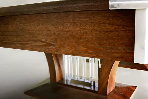 Для тех, кто готов вложить больше средств в покупку стола, отличным выбором станет массив ясеня. Этот материал сохраняет все преимущества ясеня, но при этом выглядит более элегантно и престижно.