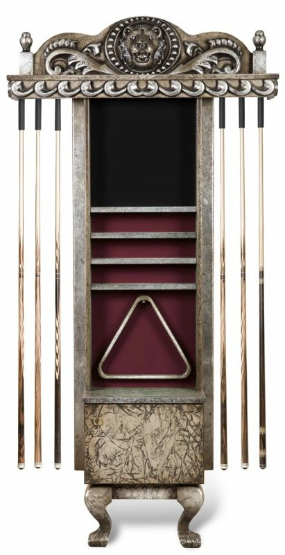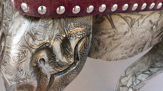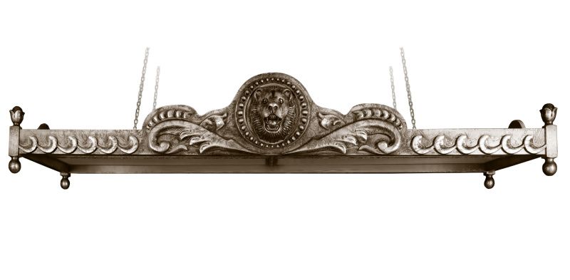 От предшественника «Лео II» отличает отделка. Это более фактурный стол, с ярко выраженным рыцарским характером. Причудливая сетка «шрамов» сплетается в единый благородный декор, наполняя сам стол духом средневекового историзма, придавая поверхности эффект металла. Выкраска стола выполняется вручную. Червленое серебро потали, авторское патинирование, россыпь рельефа и резных элементов представляют восхитительное сочетание. Лафет украшают львиные головы, ноги стола - это львиные лапы, которые изысканны и основательны одновременно.
