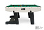 Еще одним преимуществом данной модели является удобный механизм складывания, позволяющий без особых усилий быстро сложить или разложить бильярдный стол. Благодаря складной конструкции опорных ножек, бильярдный стол при хранении занимает минимум пространства. Компактные размеры делают транспортировку и перемещение стола очень удобным.