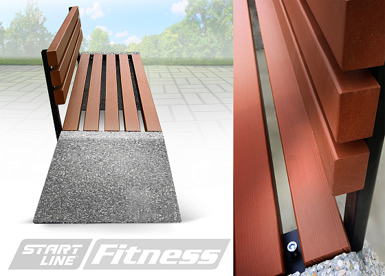 Самой подходящей для парков и скверов является мебель с бетонными опорами, она идеальна для улицы с практической и эстетической стороны. Благодаря мощному каркасу конструкция прочна, долговечна, устойчива к любым погодным явлениям и актам вандализма. Фактура камня гармонично смотрится на природном ландшафте. Садово-парковая мебель из бетона Start Line Fitness привлекательна своей фундаментальностью и ценой. В сидениях и спинках используется сосна – экологичный материал. Деревянный брус прочен и долговечен за счет антисептической обработки, благодаря многослойному покрытию поверхность дерева устойчива к осадкам и воздействию внешних факторов. Представленная садово-парковая мебель станет хорошим дополнением к уличной площадке со