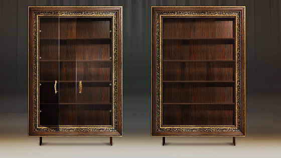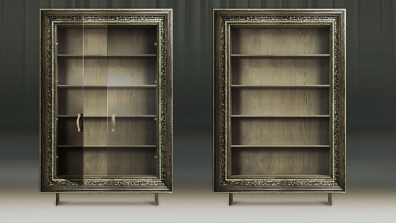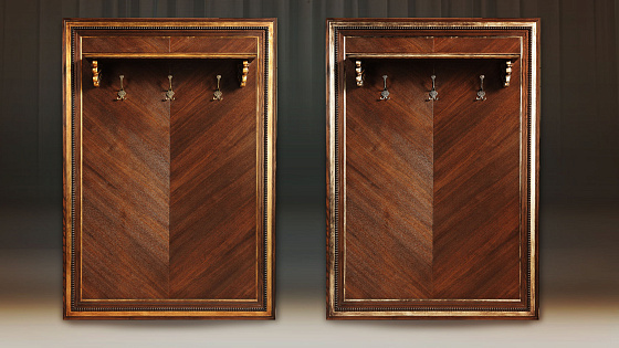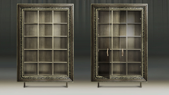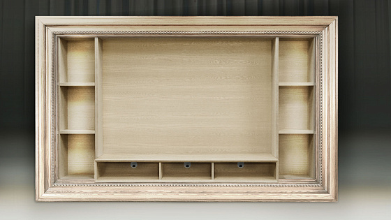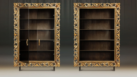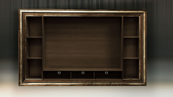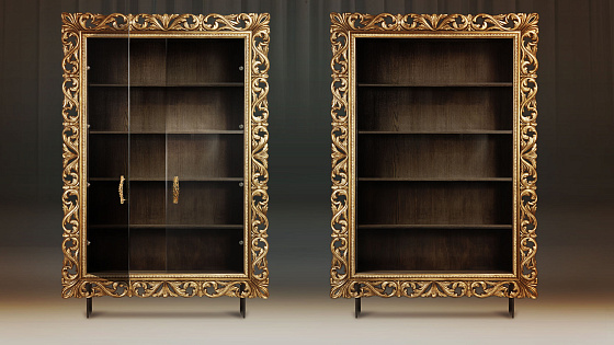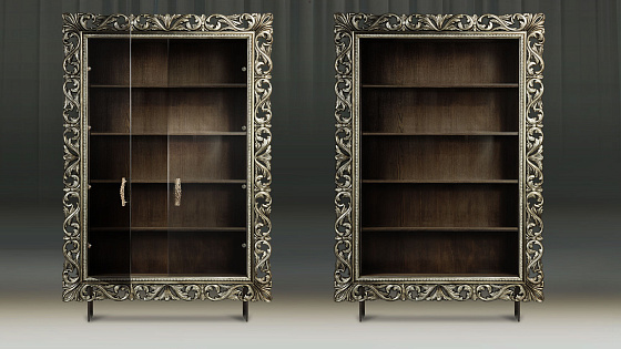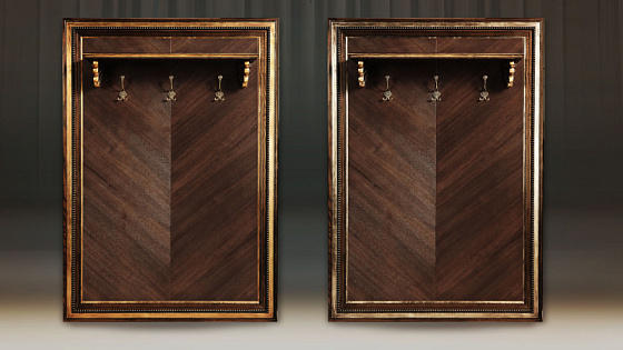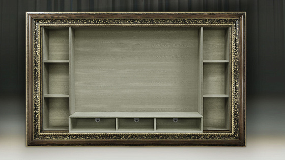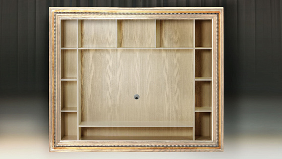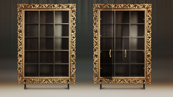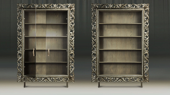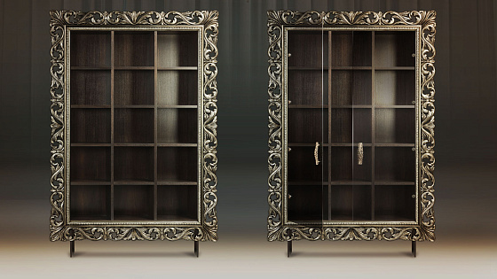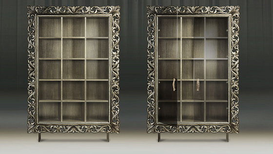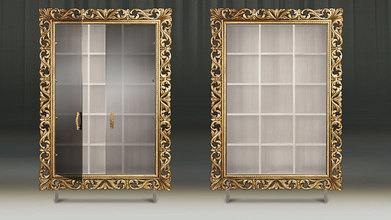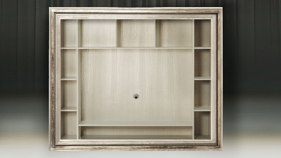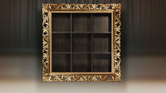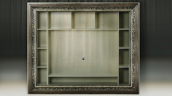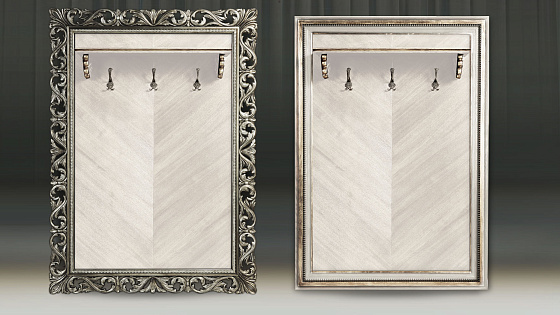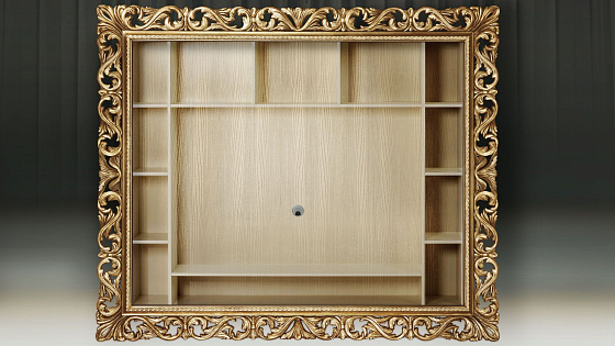 Мебельные модули отличаются широким выбором багета. Рамы могут быть резными и монолитными, украшенные ручной резьбой, покрытые золотой или серебряной поталью, патинированные. Каждая рама имеет свое Имя. Именно багет преображает модуль, а выкраска создает стиль.