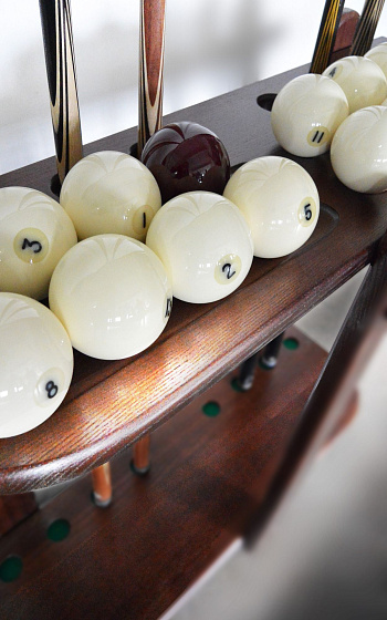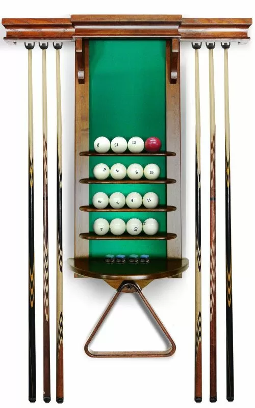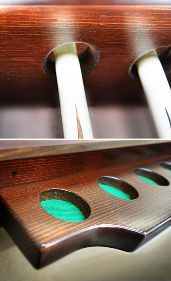 Настенная киевница предназначена для избежания деформации кия. Неправильное хранение кия приведет его в негодность, поэтому он должен ровно стоять на подставке или находиться в подвешенном вертикальном состоянии. Ни одна бильярдная комната не обходится без качественной киевницы. Настенная киевница будет уместна в помещении, где стена находится на комфортном расстоянии от бильярдного стола.