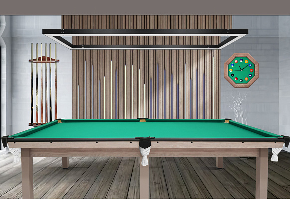 Стол поставляется в собранном виде, что избавляет от затрат времени и средств на сложный монтаж. Модель «Юнкер 2 NEW» доступна в двух модификациях — для пула (шары 57,2 мм) или русской пирамиды (6-8 футов - шары 60 мм, 9 фт - шары 68 мм).