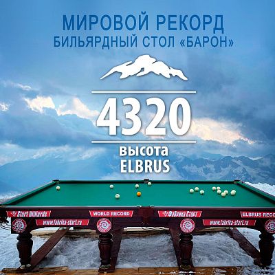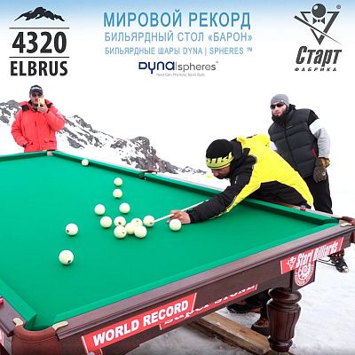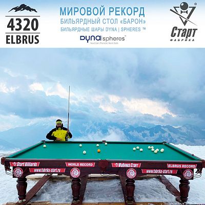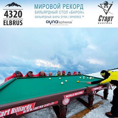 На высоте 4 320 метров над уровнем моря был установлен бильярдный стол Фабрики «Старт» - «Барон» на камне SUPER STONE. Событие само по себе рекордное, ведь еще никогда бильярд не поднимался так высоко, никто и никогда в мире не устанавливал бильярдный стол на такой высоте! Для Фабрики «Старт», безусловно — это свой рекорд и достижение! И в честь этого знаменательного события Фабрика выпускает стол-рекордсмен ограниченной серией, с персонализированными лузами.