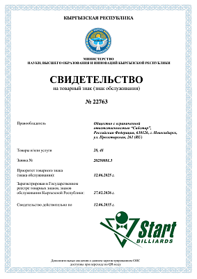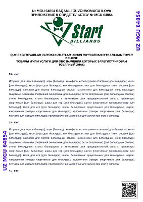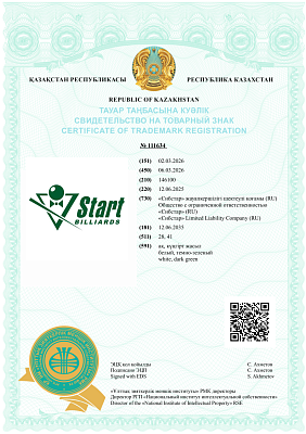 Официальная регистрация товарного знака — это не просто формальность, а юридическое подтверждение того, что вся продукция бренда Start Billiards, является оригинальной, произведена на сертифицированных мощностях Фабрики «Старт» и соответствует всем заявленным техническим характеристикам.