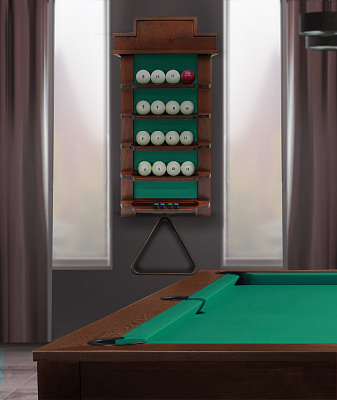 Модель изготовлена из высококачественной фанеры, обеспечивающей прочность и долговечность. Стенка выстлана сукном, которое защищает оборудование от сколов и царапин, а также обеспечивает бесшумное и мягкое размещение шаров.