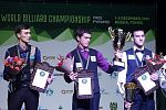 В девятой партии Владислав Осьминин забивает шесть с кия, в десятой – семь, в одиннадцатой – два раза по четыре. Счет по партиям (8:0; 8:2; 2:8; 8:4;0:8;8:6;0:8;5:8;8:3;8:0;8:0). Со счетом - 7:4, спортсмен Фабрики «Старт»,становится двукратным чемпионом мира по «свободной пирамиде».