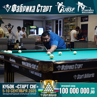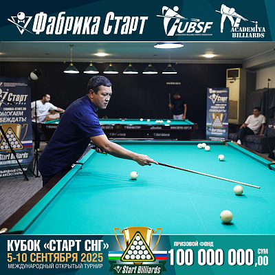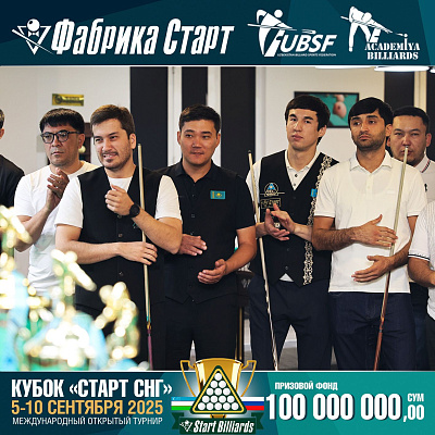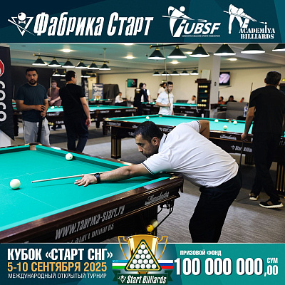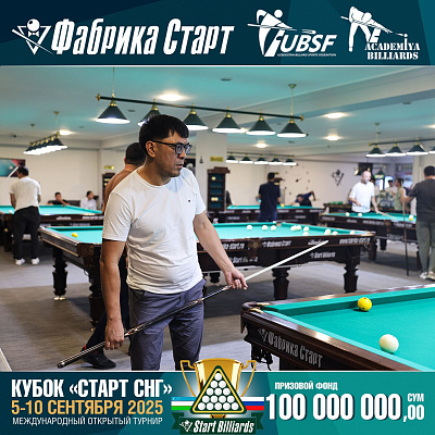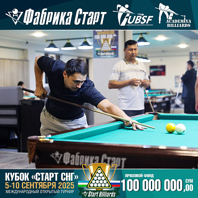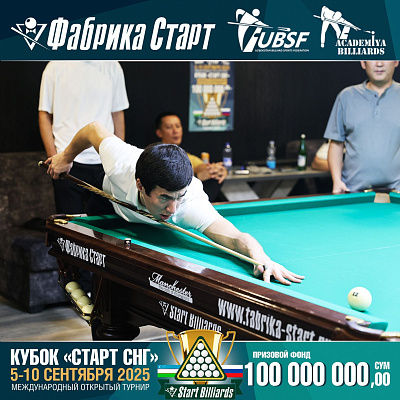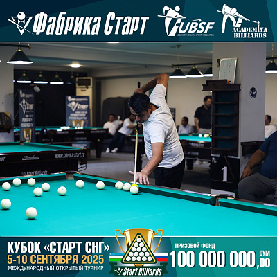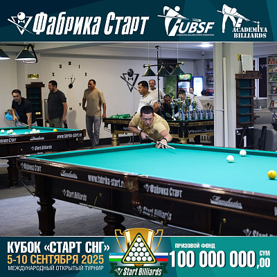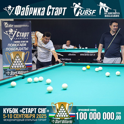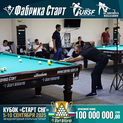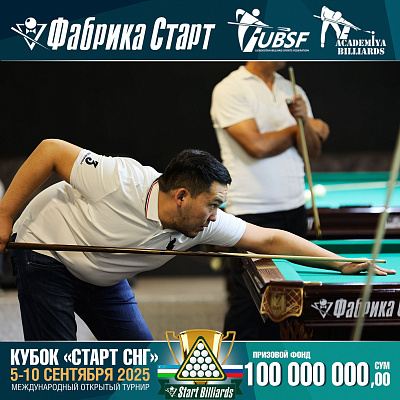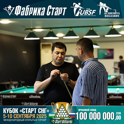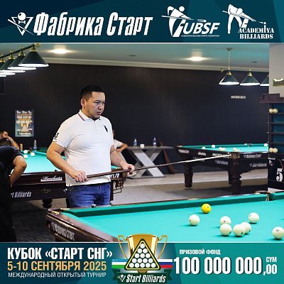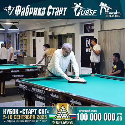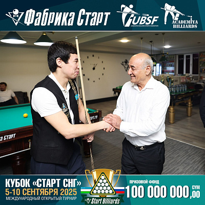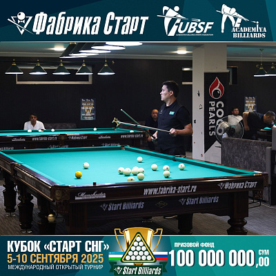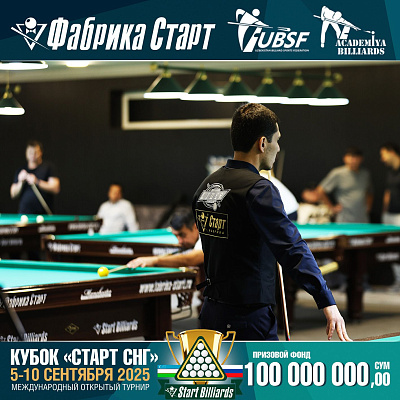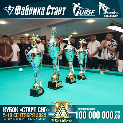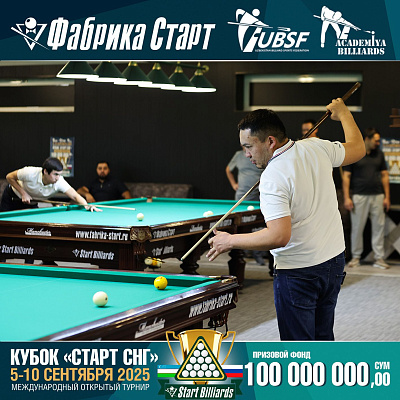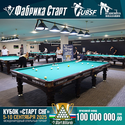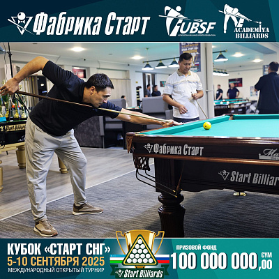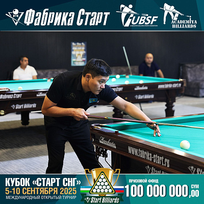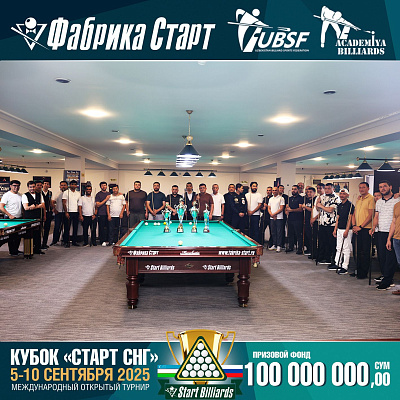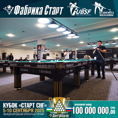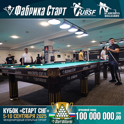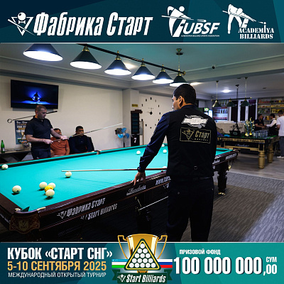 Фабрика «Старт» совместно с Федерацией бильярдного спорта Узбекистана и официальным дилером Фабрики «Старт» Shirina Bonu объявила о провела международный открытый турнир Кубок «СТАРТ СНГ» 2025!