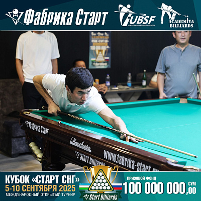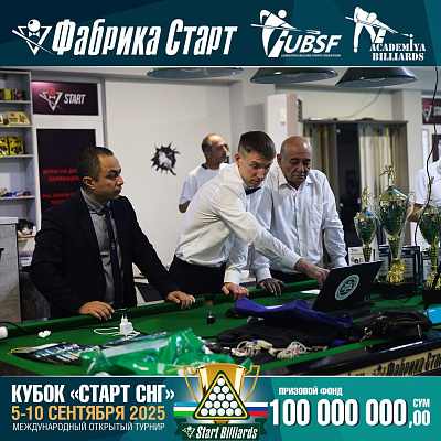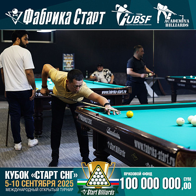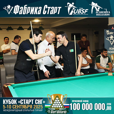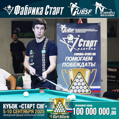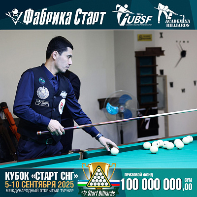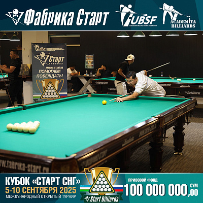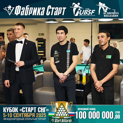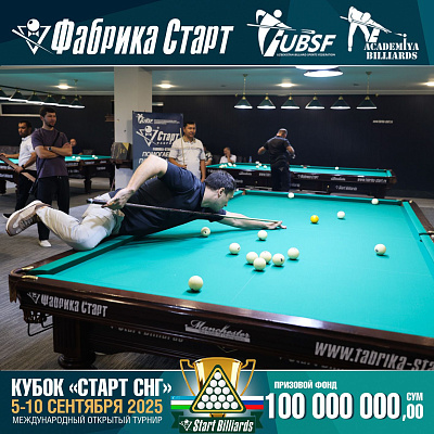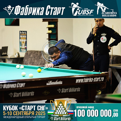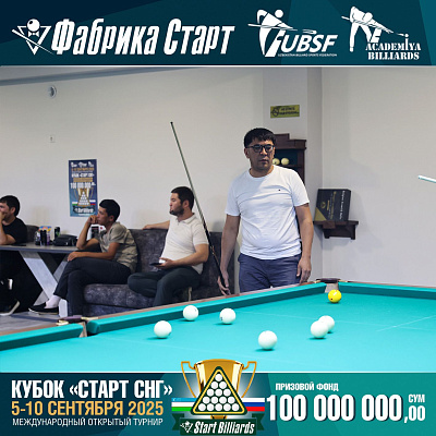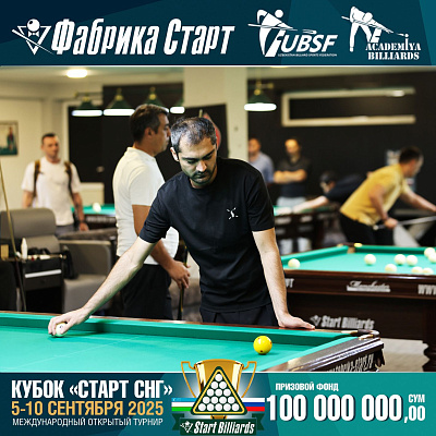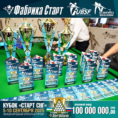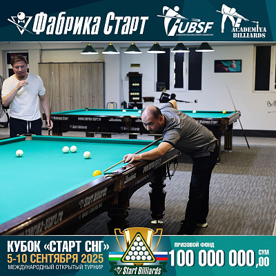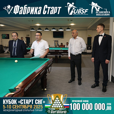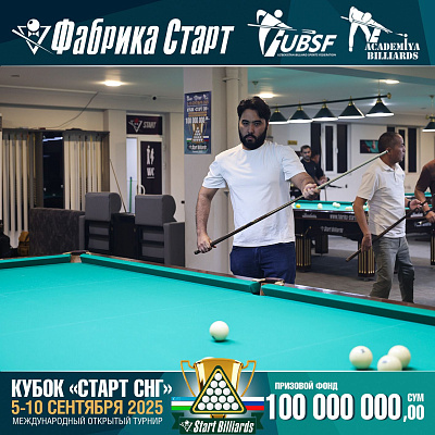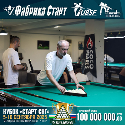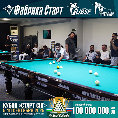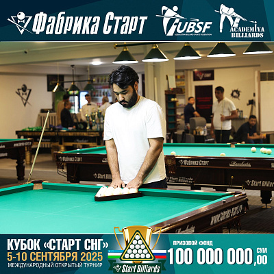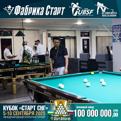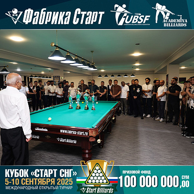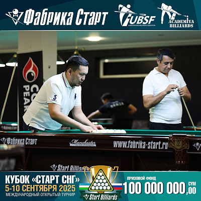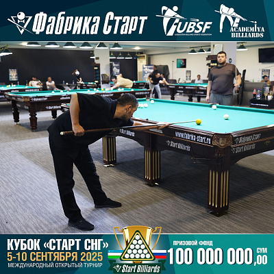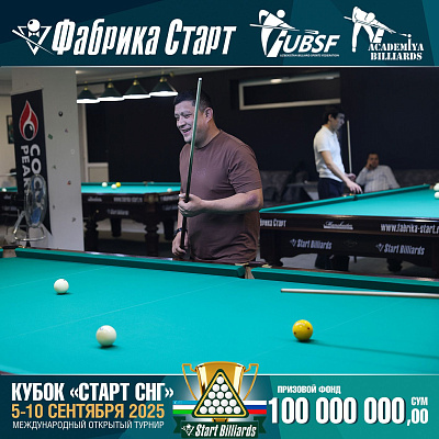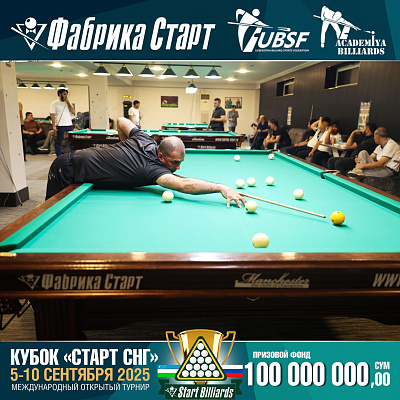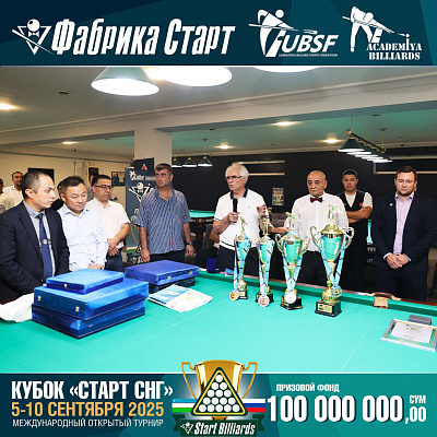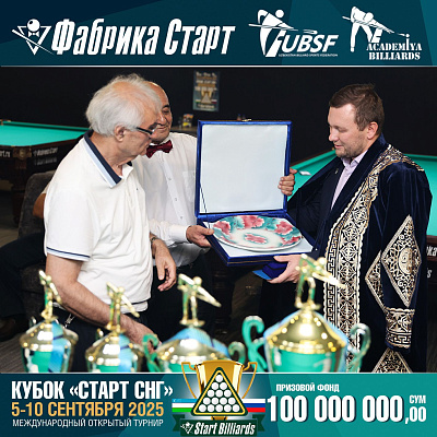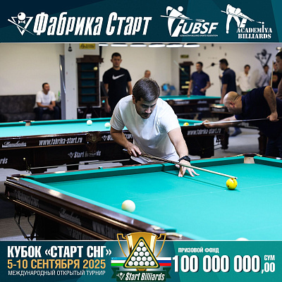Фабрика «Старт» совместно с Федерацией бильярдного спорта Узбекистана и официальным дилером Фабрики «Старт» Shirina Bonu объявила о провела международный открытый турнир Кубок «СТАРТ СНГ» 2025!