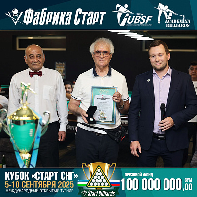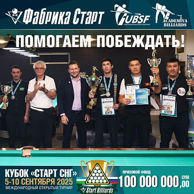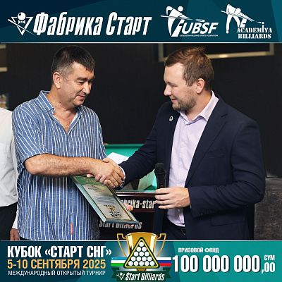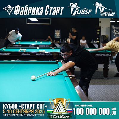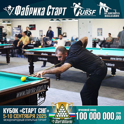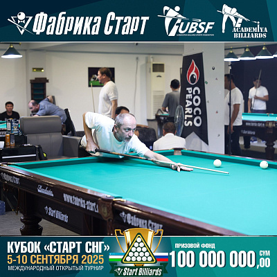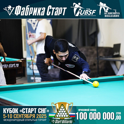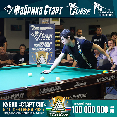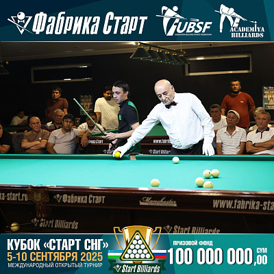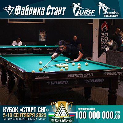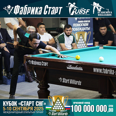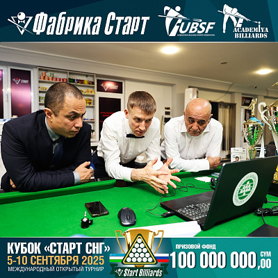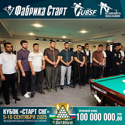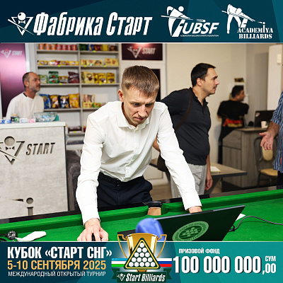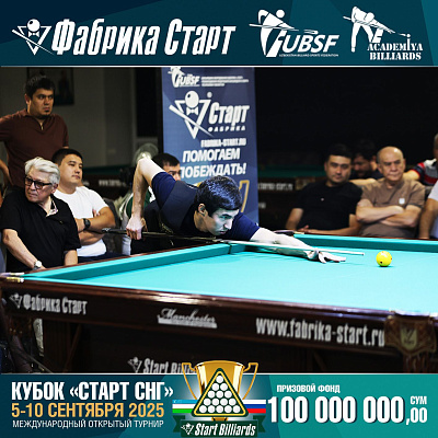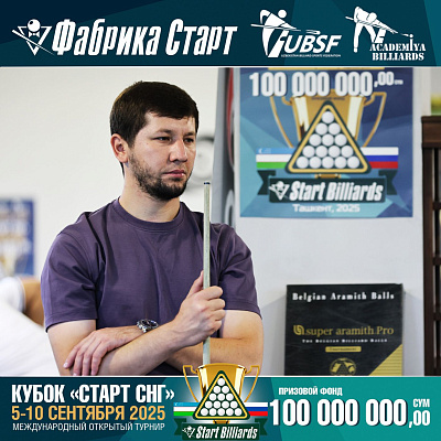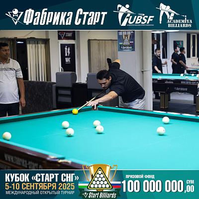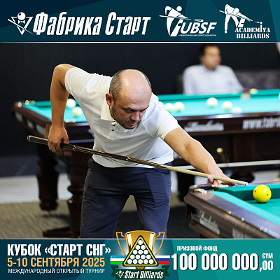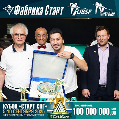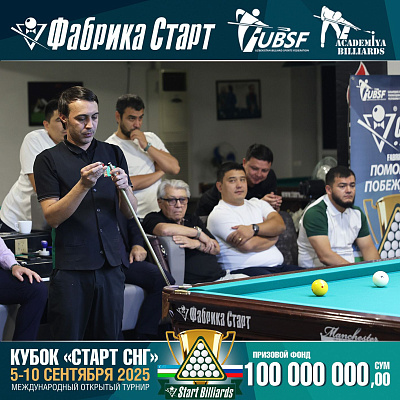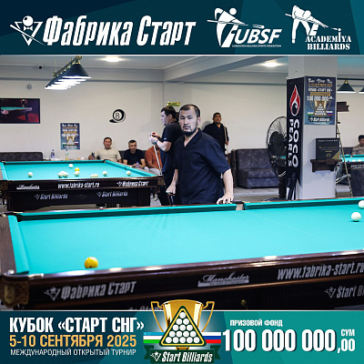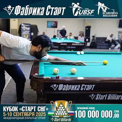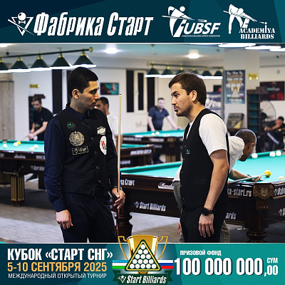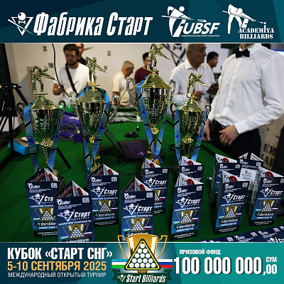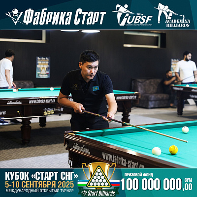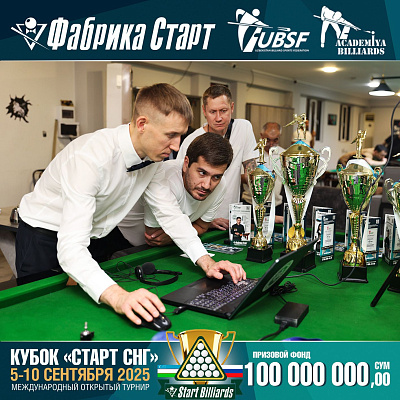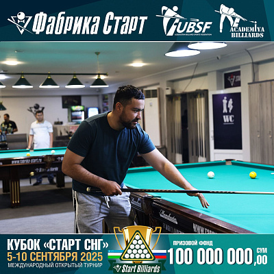Фабрика «Старт» совместно с Федерацией бильярдного спорта Узбекистана и официальным дилером Фабрики «Старт» Shirina Bonu объявила о провела международный открытый турнир Кубок «СТАРТ СНГ» 2025!