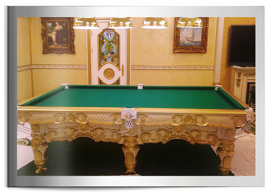 Даже самые притязательные клиенты и ценители прекрасного по достоинству оценят великолепный дизайн бильярдных столов, которые в зависимости от предпочтений и выбранного стиля могут быть декорированы сусальным золотом, серебряной пастой или патинированы для придания изделию эффекта старины, украшены резьбой и затянуты бельгийским сукном!