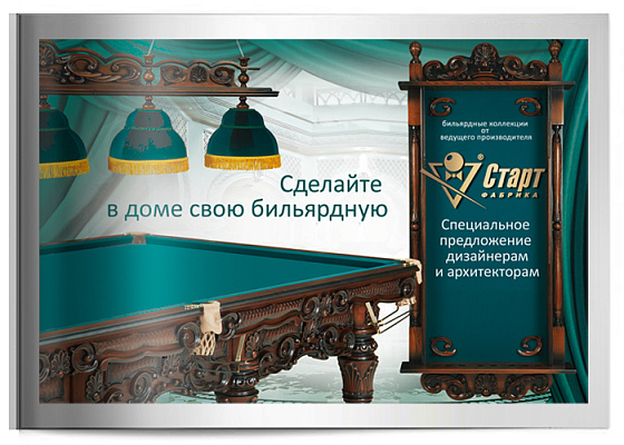 О какой бы коллекции Фабрики «Старт» не шла речь, не стоит забывать и о том, что это настоящий профессиональный бильярд, беспрецедентные качество и долговечность, гарантирующие неповторимое удовольствие от игры!
